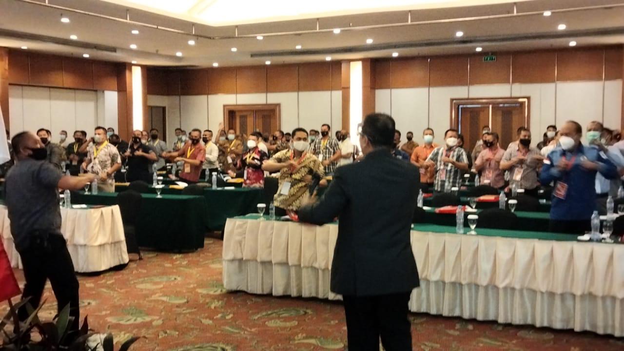 Insan Polri nampak kompak dengan mengenakan dress code batik. Demi memeriahkan suasana dan menciptakan seminar yang fun, Rinaldi ajak mereka untuk senam diiringi dengan berbagai macam lagu.