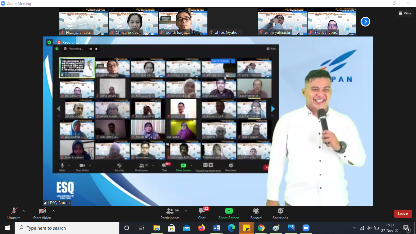 “Sama halnya yang dialami oleh ESQ dulu dan sekarang bapak ibu sekalian. Dulu kami training secara offline, sekarang mau tak mau harus online untuk mencegah terjadinya kerumunan,” sambungnya.