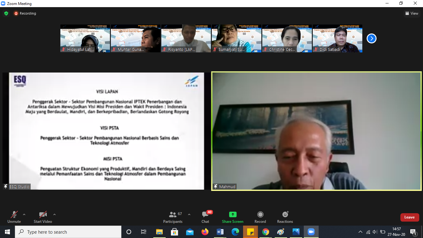 dirinya telah membacakan Visi Misi PSTA LAPAN dengan semangat.