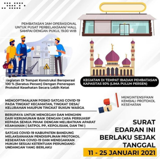 ESQNews.id, JAKARTA - Pemkab Bandung telah mengeluarkan Surat Edaran PPKM, untuk menindaklanjuti Instruksi Mendagri Nomor 1 Tahun 2021 Tentang Pemberlakuan Pembatasan Kegiatan Masyarakat (PPKM) untuk Pengendalian Penyebaran Covid-19 di Wilayah Kabupaten Bandung.
