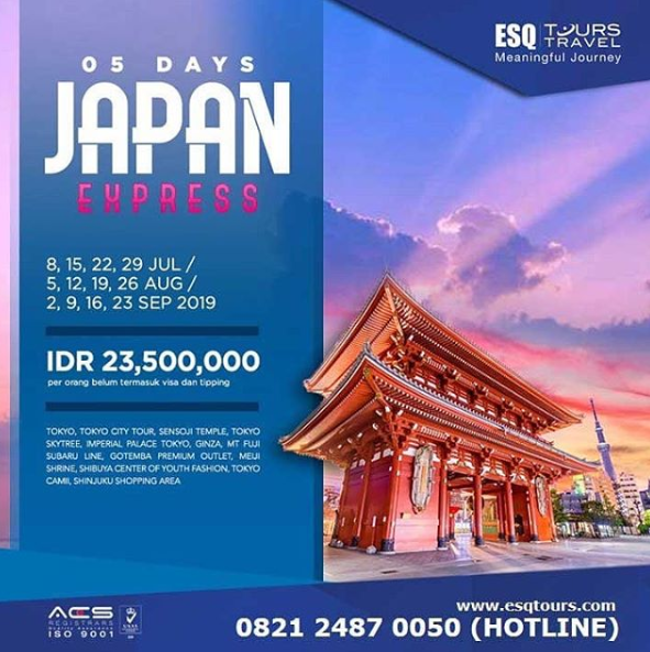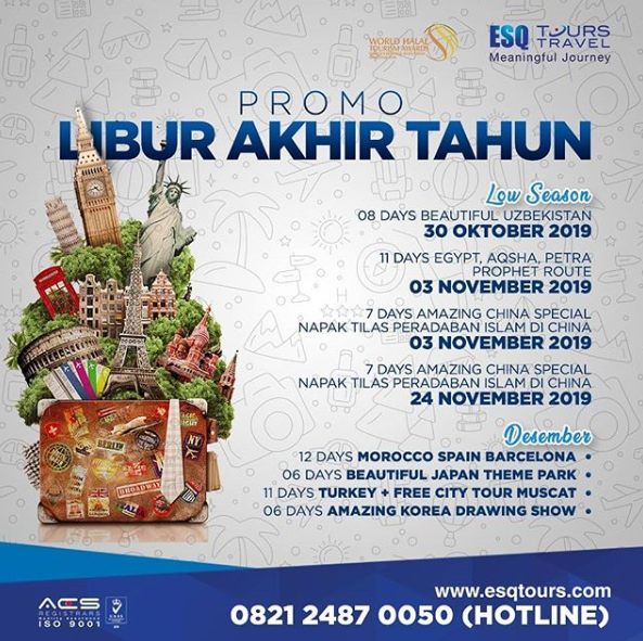 Nah, agar liburan Anda meninggalkan kesan mendalam dan memberikan banyak manfaat, yuk jalan-jalan bareng ESQ Tours! Ada paket spesial liburan yang sedang PROMO, lho. Tertarik? Ini daftarnya: