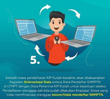 Adapun tahap-tahap sinkronisasi pendaftaran SNMPTN bagi peserta KIP Kuliah sebagai berikut: