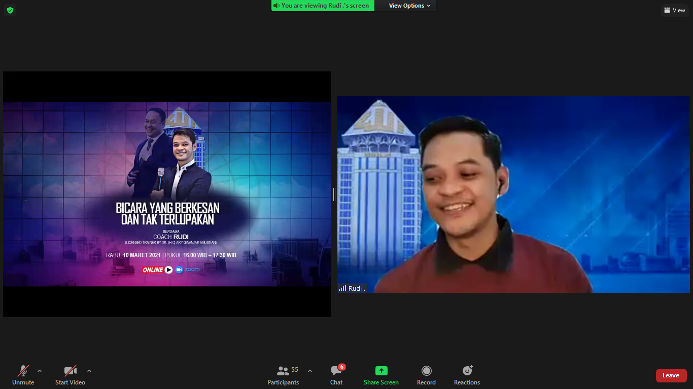 (trainer lisensi dari Dr. (H.C) Ary Ginanjar Agustian. Di awal sesi, ia menyapa