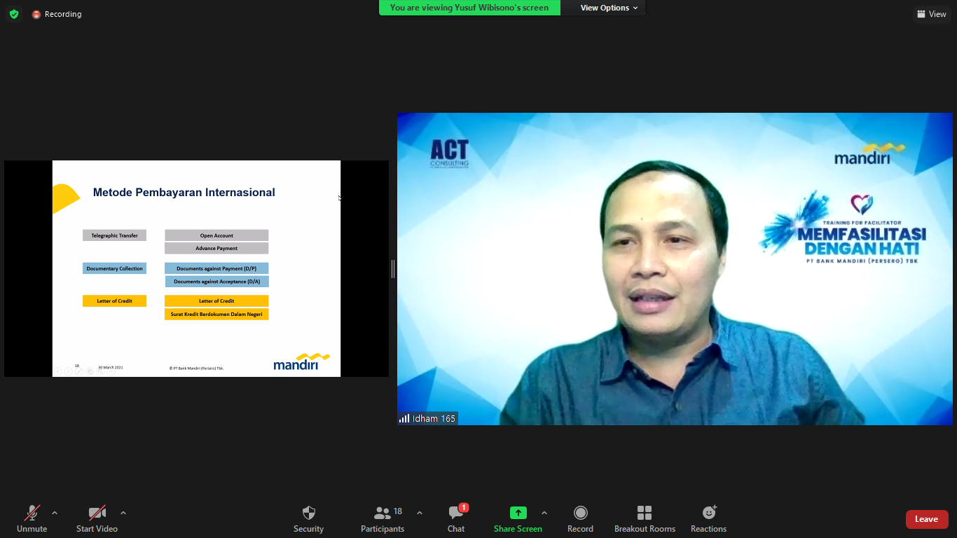 Kegiatan tersebut hasil kerjasama antara Bank Mandiri dengan ACT Consulting.