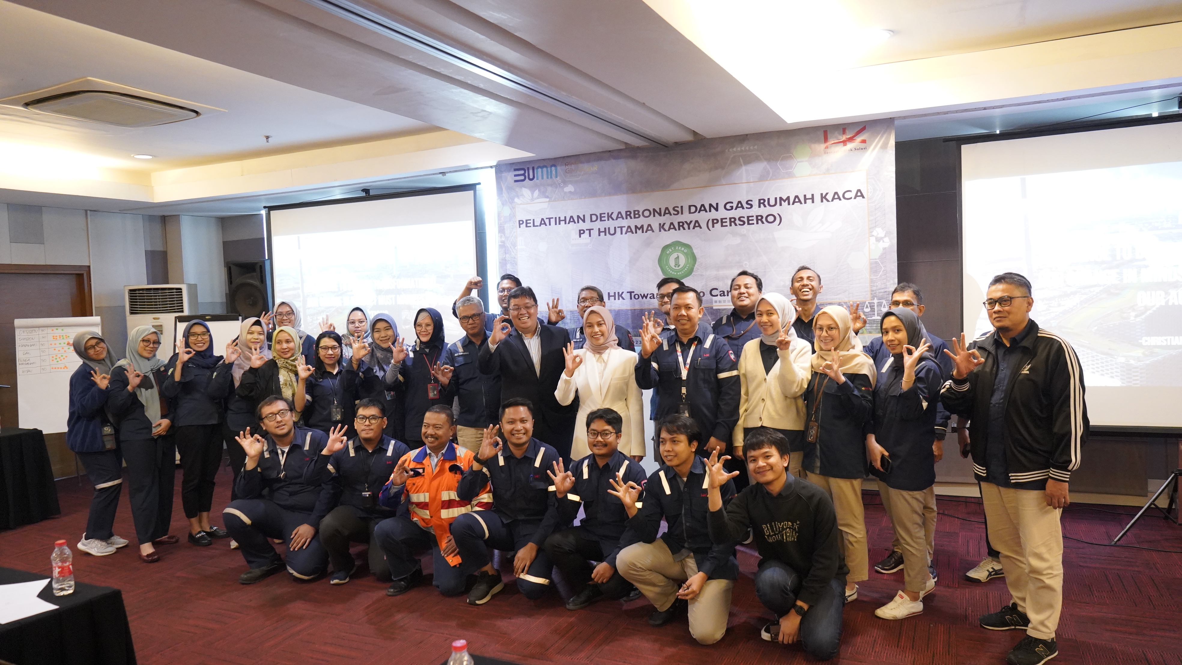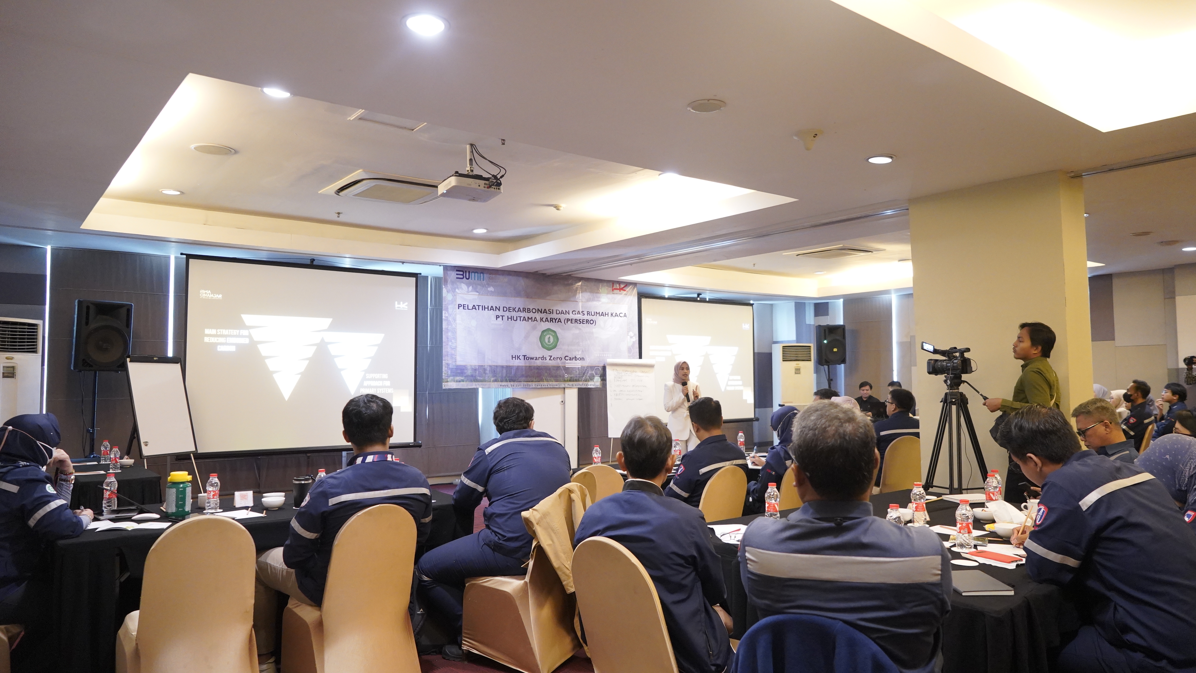 Belasan insan Hutama Karya diberikan Pelatihan Dekarbonisasi & Perhitungan Gas Rumah Kaca (GRK) oleh Rima Ginanjar Architects. Batch atau angkatan pertama ini dilangsungkan seharian penuh pada tanggal 26 Juli 2023 di Cendana Room Lt. 1, Park Hotel Cawang, Jakarta.