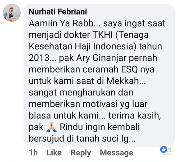 “Mudah-mudahan persembahan kami ini bisa sedikit membantu kesedihan Bapak dan Ibu yang tidak jadi berangkat tahun ini. Bagi yang belum mudah-mudahan hatinya lekas tergerak untuk menyeru panggilan Allah. Bagi yang tidak mampu semoga Allah berikan rejeki yang berlimpah. Hingga kelak bisa pergi ke Padang Arafah. Dengan sepenuh hati dan sepenuh jiwa,” ucap Ary.