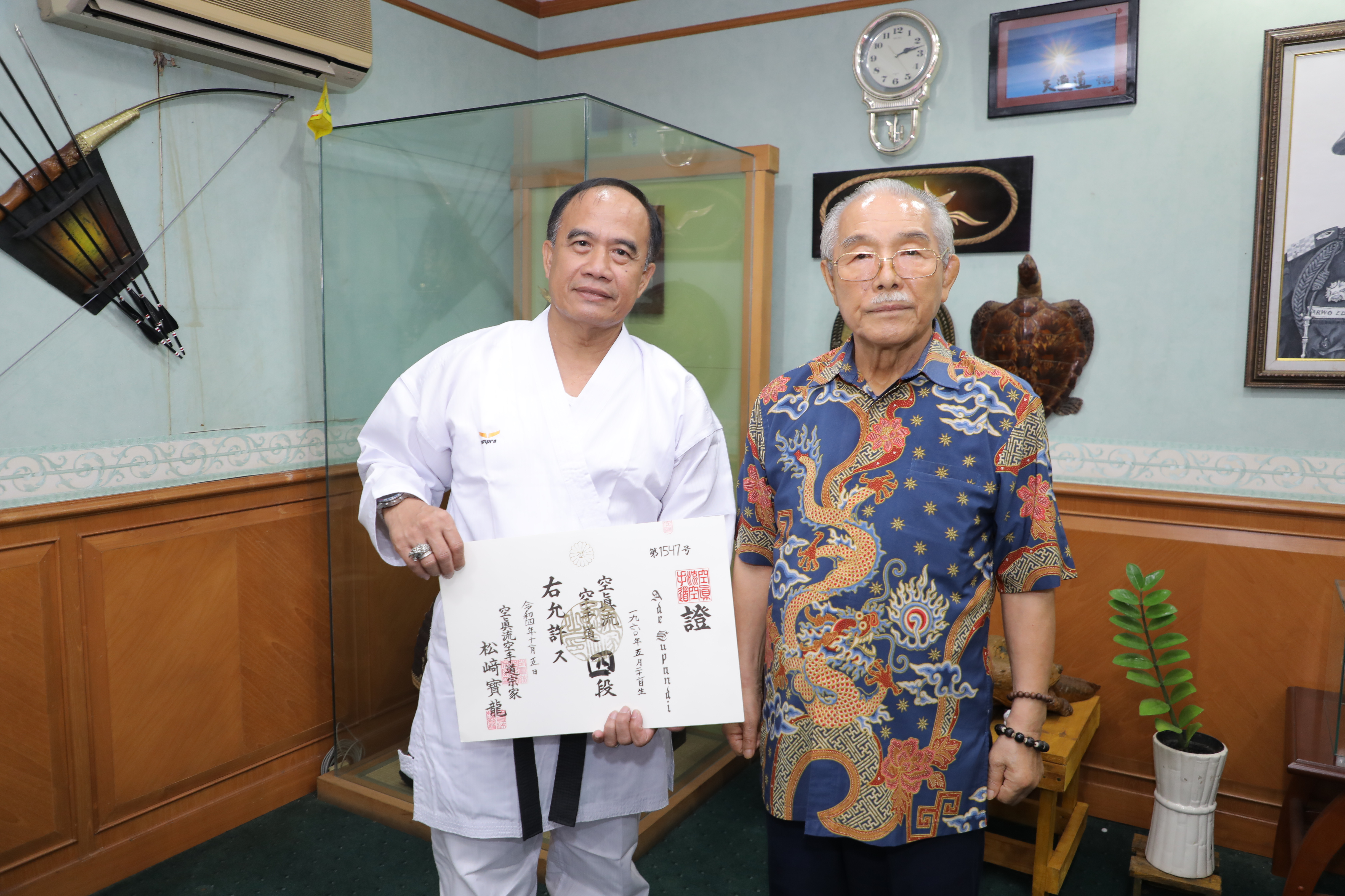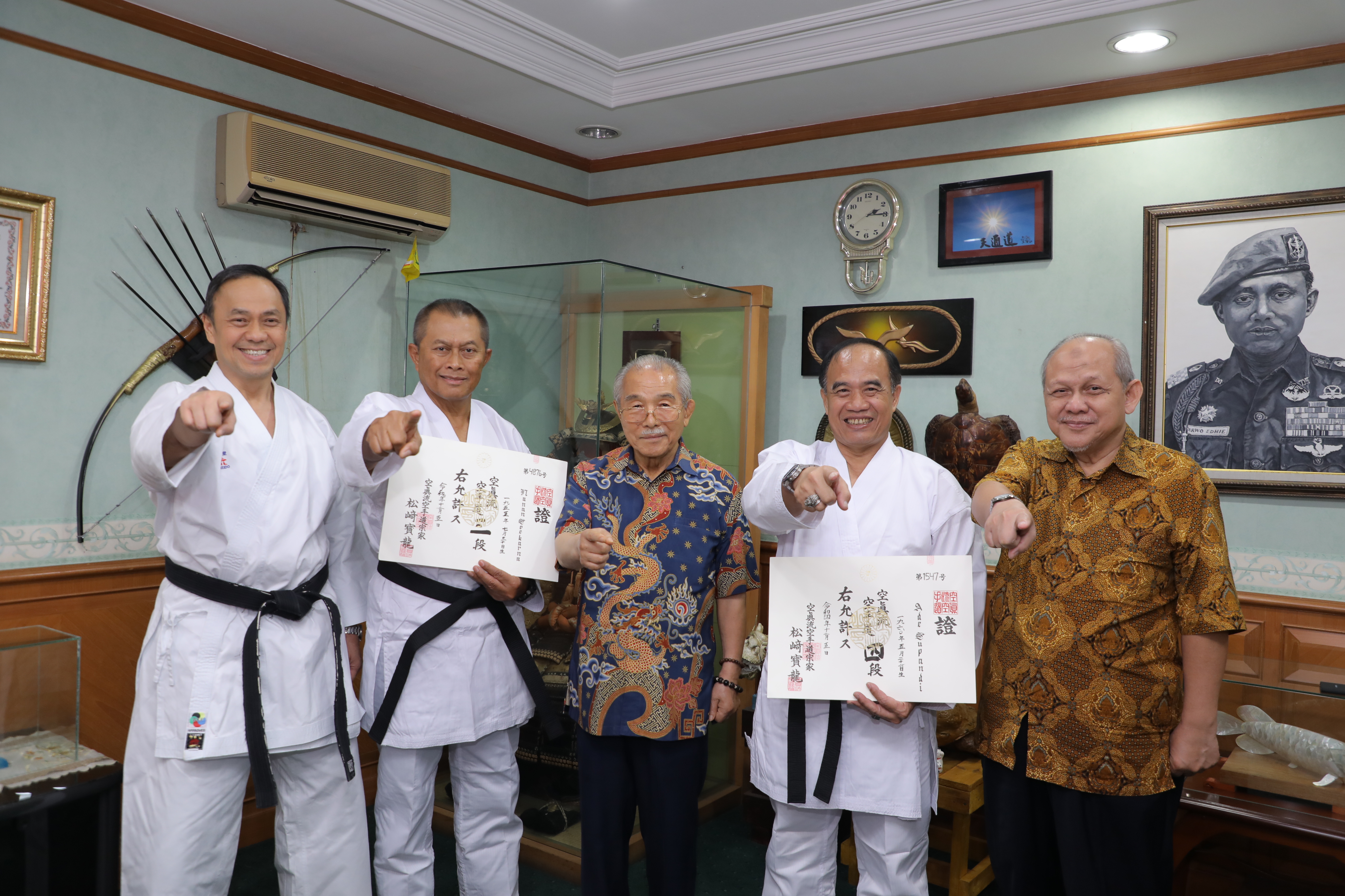 ESQNews.id, JAKARTA – Di saat yang bersamaan, Souke Horyu S. Matsuzaki, Guru Besar Kushin Ryu M Karate-Do Indonesia (KKI) memberikan Ijasah Karate DAN serta RENSHI (tanda jasa) kepada 2 orang yakni Laksamana TNI (Purn.) Dr. Ade Supandi, S.E., M.A.P. (mendapat DAN IV) & Komisaris Jenderal (Purn.) Drs. Nanan Soekarna (mendapat DAN III).