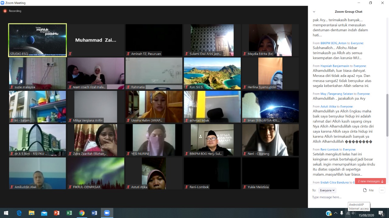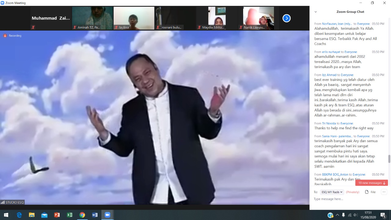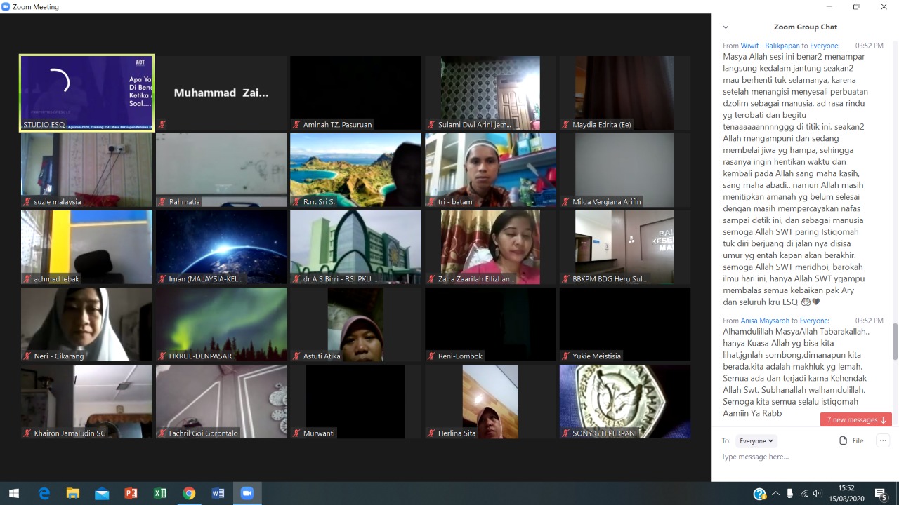 ESQNews.id, JAKARTA - Training ESQ New Chapter Online (NC) dihadiri oleh 11 (sebelas) Negara, selama dua hari (15-16/8/20). Di antaranya: Kuwait, Turki, Jordan, Jepang, Hongkong, Singapore, Malaysia, Indonesia, Taiwan, Belanda, dan Swedia.