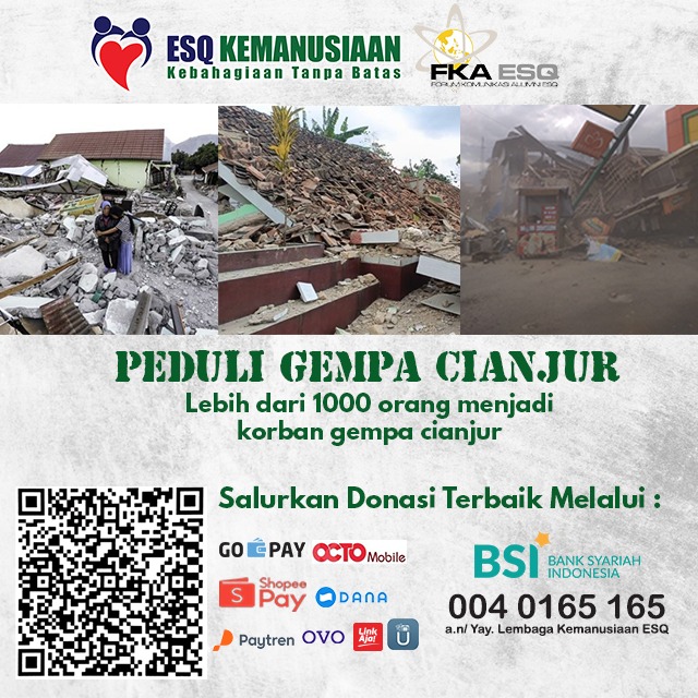 Sampai saat ini (23/11/2022) tim ESQ Kemanusiaan, FOSMA 165, FKA ESQ Jabar, Stikes Dharma Husada masih terus berkontribusi untuk para korban yang ada di Cianjur dan sekitarnya.