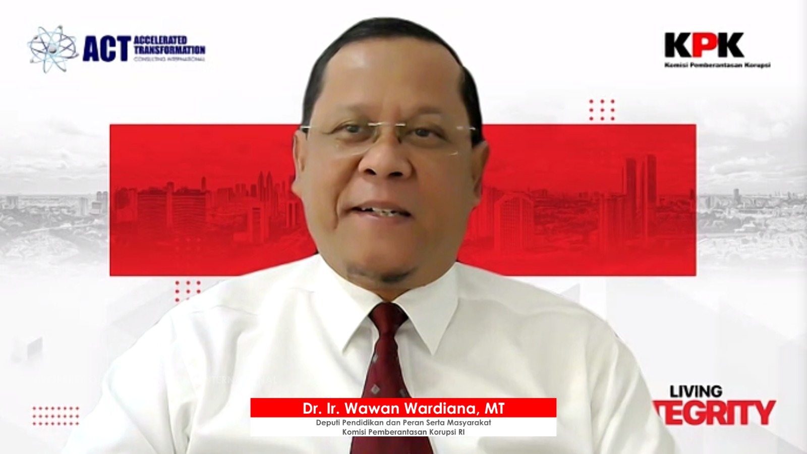 Dalam pencegahan korupsi, ESQ/ACT Consulting International menggelar webinar bertajuk Living Integrity dengan menggandeng Komisi Pemberantasan Korupsi (KPK) sebagai narasumber.