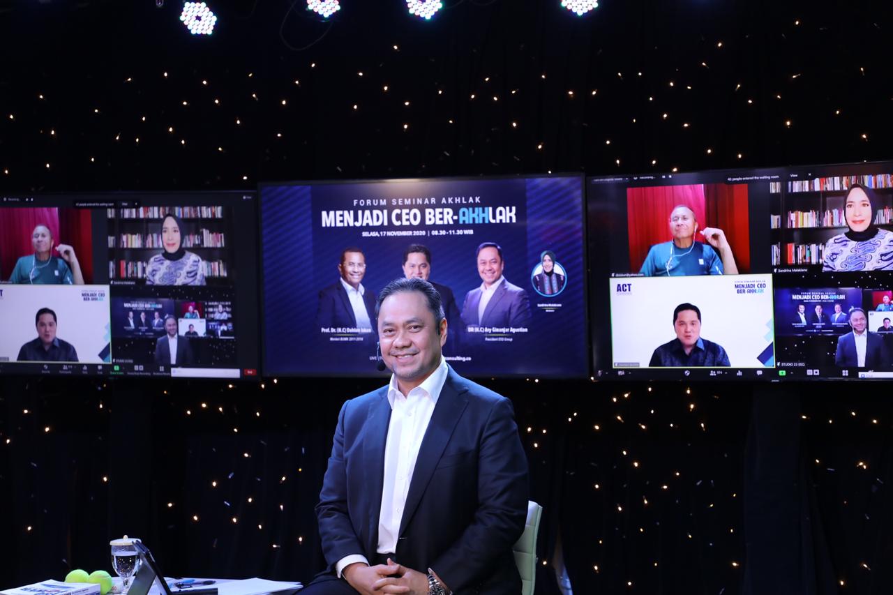Dalam Webinar ini, Erick Thohir bertindak sebagai Keynote Speech. Sedangkan Dahlan Iskan (Menteri BUMN 2011-2014) dan Ary Ginanjar Agustian (President ESQ Group) sebagai narasumber. Hadir juga moderator kondang Sandrina Malakiano yang tampil dengan kostum batik.