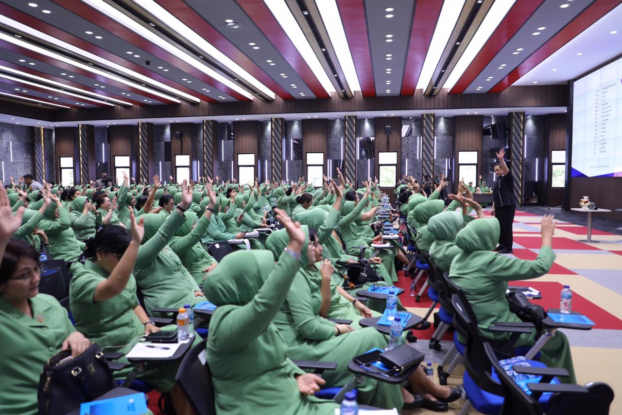 RAPIM TNI AD mengusung tema “Membina rumahtangga harmonis untuk terciptanya generasi milenial yang tangguh”. Ruangan itu dibanjiri oleh kurang lebih 500 orang dengan nuansa hijau.