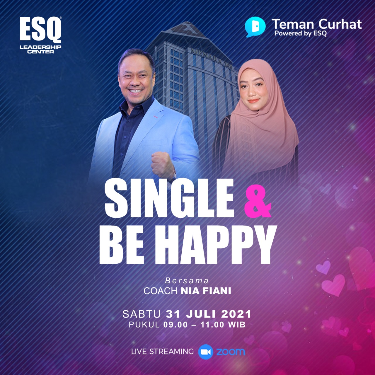 ESQNews.id, JAKARTA - Pada Sabtu, (31/7/2021) akan hadir Training ESQ Single & Be Happy pukul 09.00 WIB (Jakarta) atau 10.00 (Malaysia) – Selesai. Pelatihan yang akan digelar secara online tersebut dipandu langsung oleh pakarnya yakni Coach Nia Fiani (Trainer Lisensi Dr. (H.C) Ary Ginanjar Agustian).
