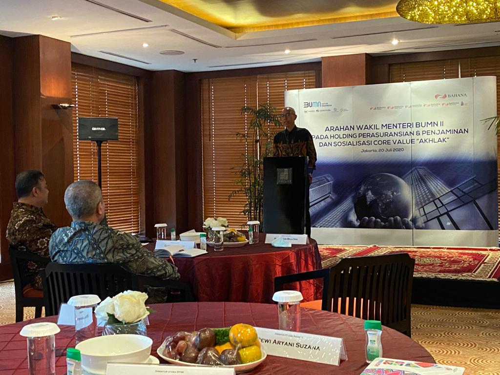 Dalam Webinar itu, Wakil Menteri BUMN II, Kartika Wirjoatmodjo memberikan arahan kepada Holding Perasuransian, Penjaminan, dan Sosialisasi Core Values AKHLAK. Karena rendahnya kepercayaan masyarakat saat ini kepada produk asuransi. Termasuk di PT BPUI.