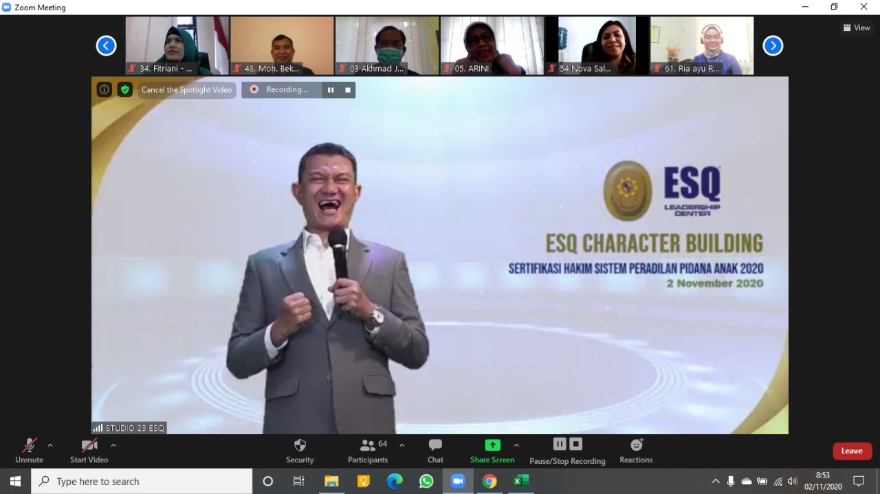 ESQNews.id, JAKARTA - ACT Consulting berikan Training ESQ yakni Sertifikasi Hakim Sistem Peradilan Pidana Anak (SPPA) Mahkamah Agung pada Senin (2/11/2020) by zoom.