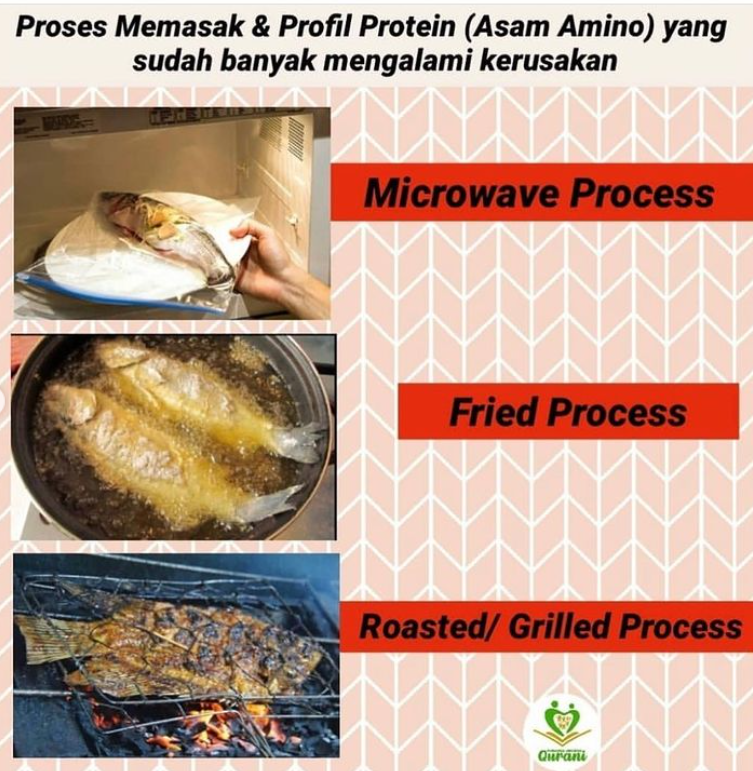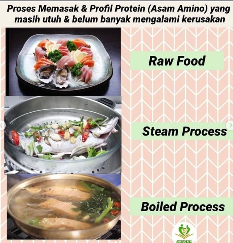 Hasil penelitian menunjukkan adanya perubahan profil protein (Asam Amino) dari sumber bahan makanan hewani maupun nabati berdasarkan proses memasaknya.