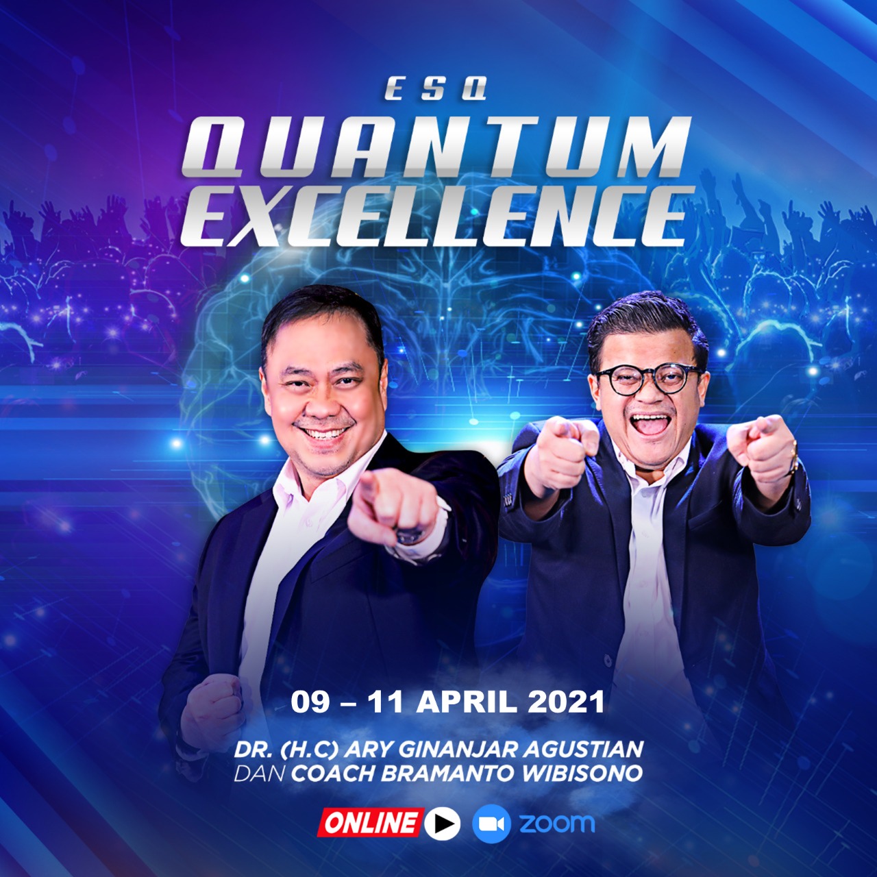 Oleh karenanya, training ESQ Quantum Excellence Exclusive akan hadir pada Jumat-Minggu, 9-11 April 2021, pukul 08:00 – Selesai Via Online Zoom bersama Dr. (H.C) Ary Ginanjar Agustian (President of ESQ Group) dan Coach Bramanto Wibisono (trainer ESQ).