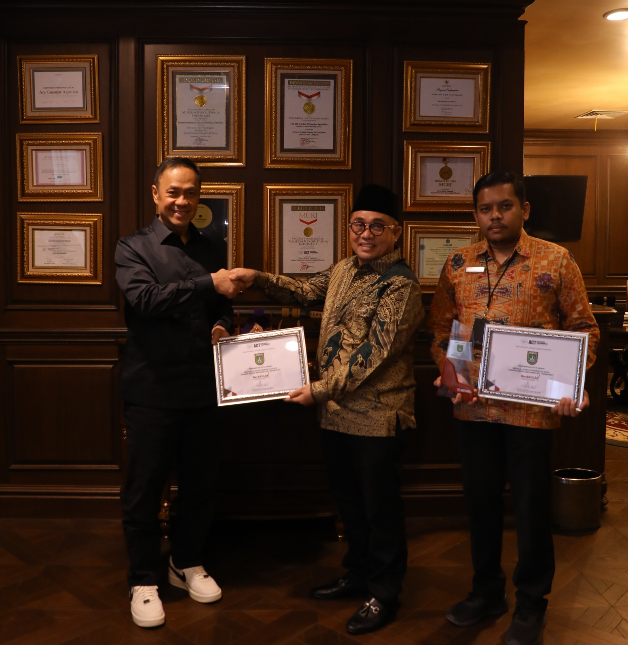 Penganugerahan tersebut diberikan langsung oleh Dr. (H.C) Ary Ginanjar Agustian (Founder ACT Consulting International) kepada Muhammad Syafie, S.Sos., M.Si (Asisten Administrasi Umum) dan Arnold Jayendra, SE., MM (Bagian Organisasi) pada tanggal 13 April 2023 di lantai 24, Menara 165, Jakarta.