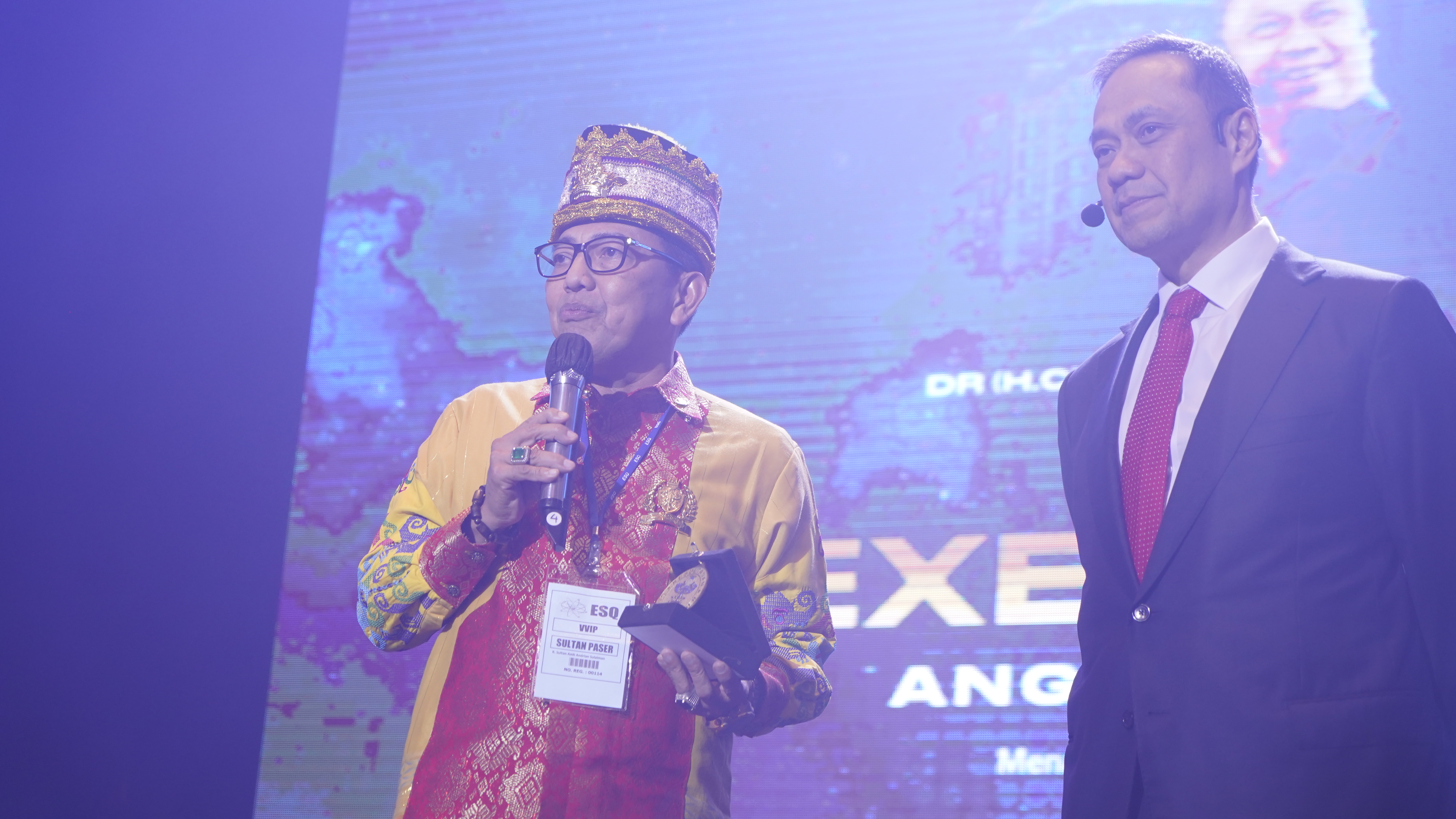 "Saya juga ingin menyampaikan terimakasih sebesar besarnya kepada pak Ary Ginanjar telah memberikan ilmu ESQ kepada saya. Dan medali kehormatan ini sebuah tanda medali kekeluargaan dari kesultanan sadurangas paser sebagai rasa cinta dan sayang saya kepada sosok tokoh ESQ."