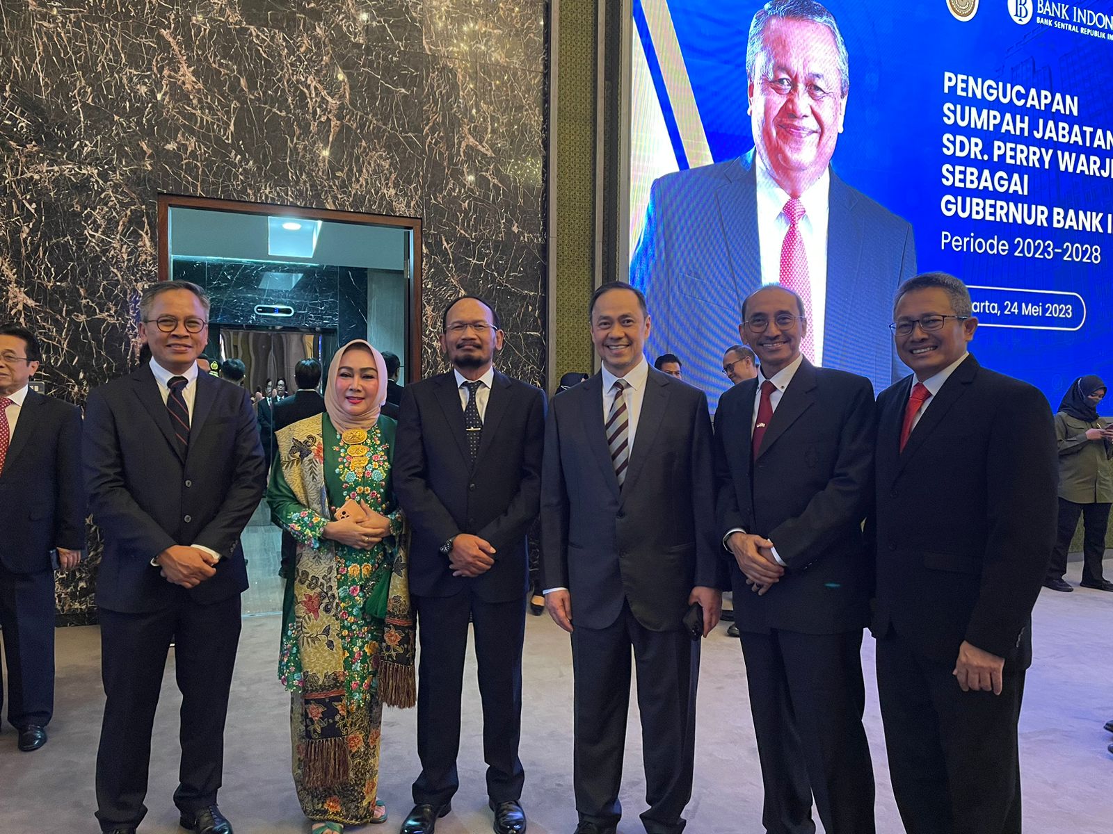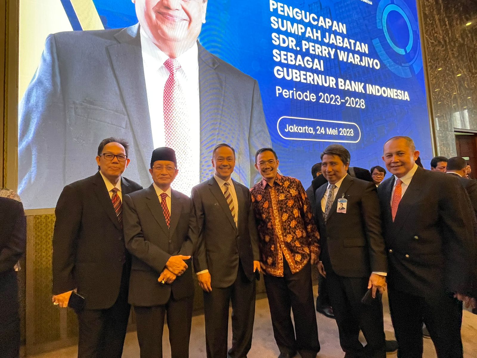 "Alhamdulillah, saya diundang untuk menghadiri pelantikan Bapak Perry Warijyo sebagai Gubernur Bank Indonesia untuk yang kedua kalinya."