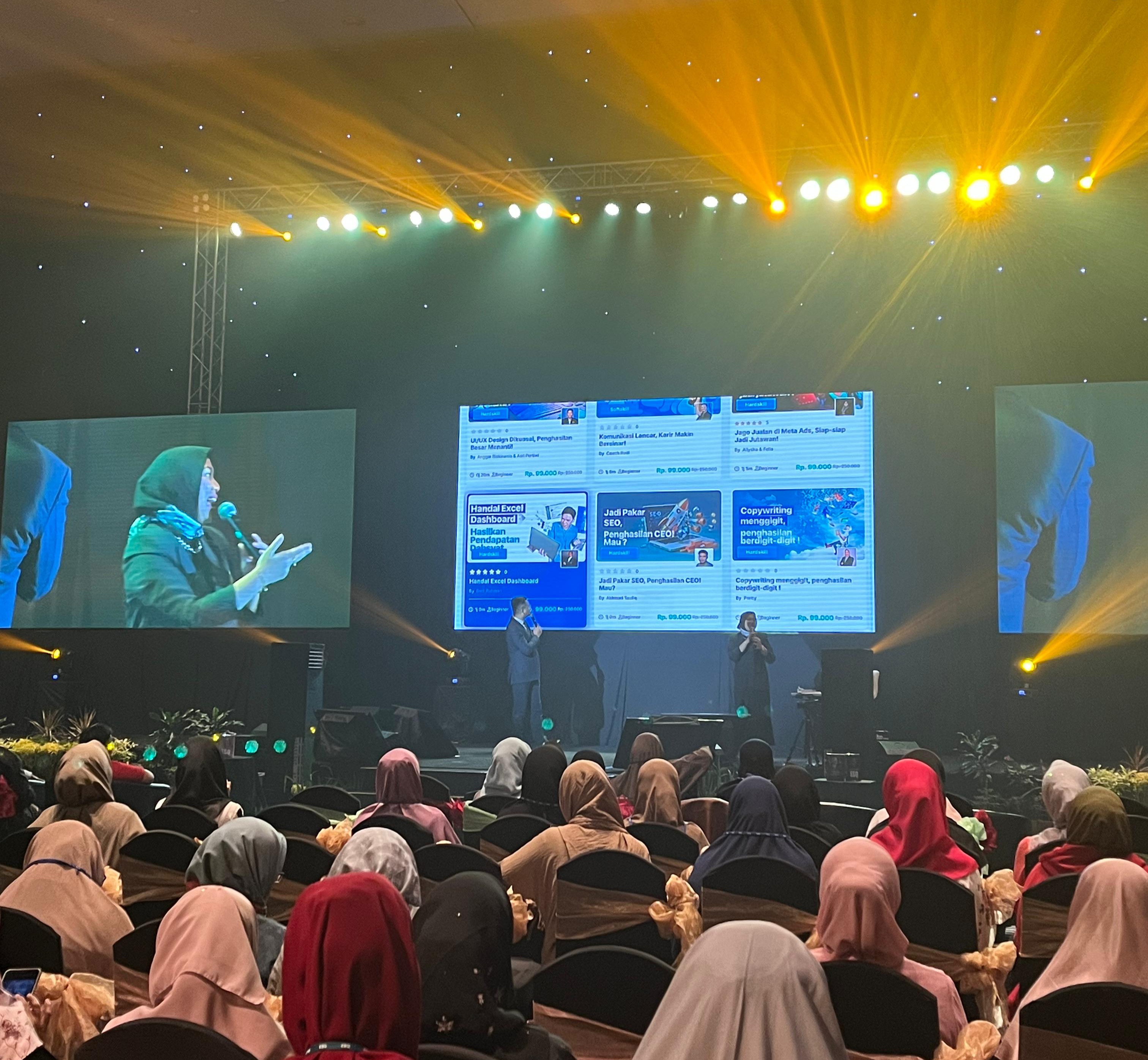Selanjutnya, dijelaskan lebih rinci mengenai platform online digital learning yang bernama ESQ Bisa Kerja oleh Mariah (Dosen Pembimbing Kelas Wirausaha Prodi Bisnis Manajemen) dihadapan 600 peserta training.