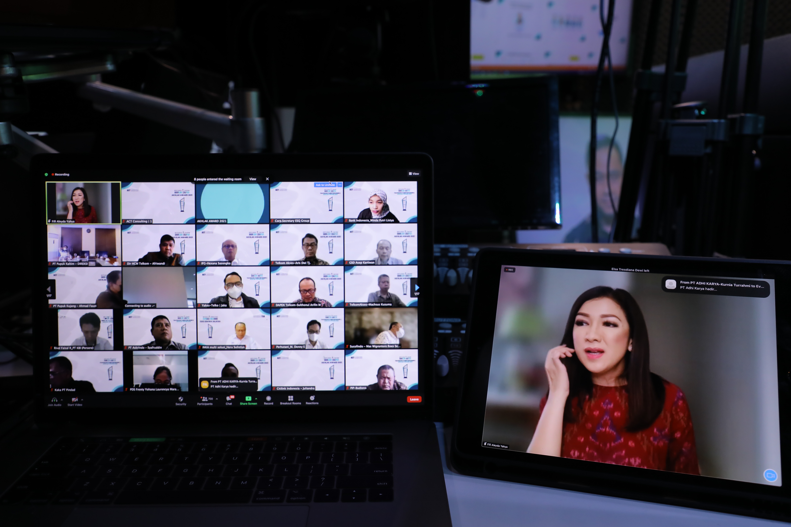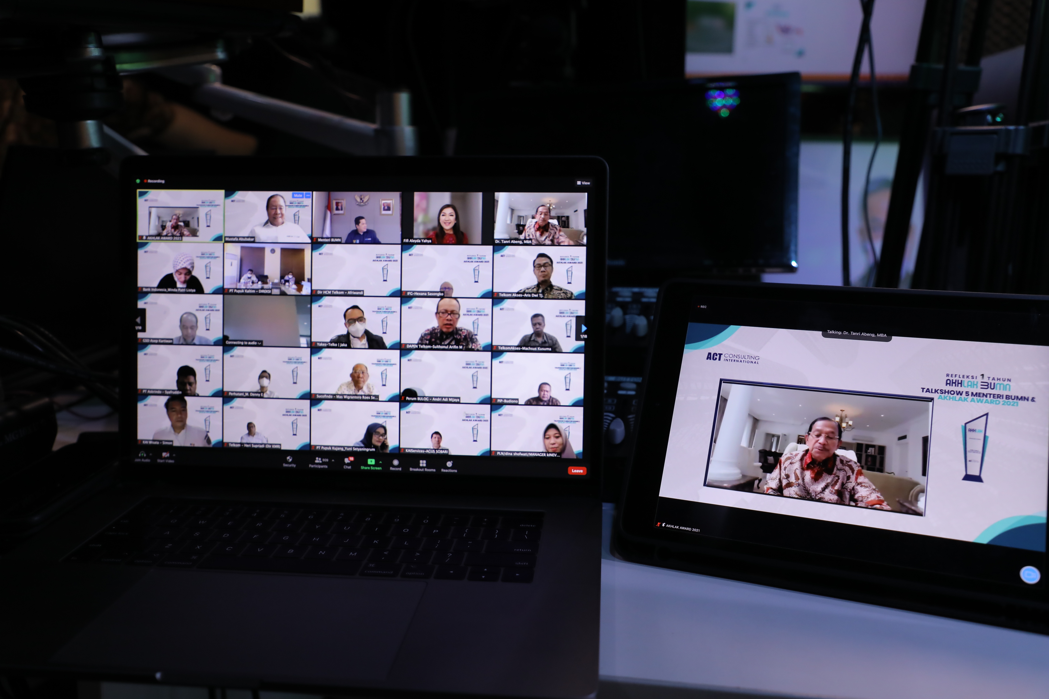 Kemudian sambutan dari Erick Thohir selaku Keynote Speaker, “Di tengah kedukaan ini kita sama-sama bersyukur masih diberikan kesempatan. Di satukan dengan para senior saya, dan bertemu dengan bapak ibu semua secara virtual untuk merefleksikan kebaikan BUMN kita. Tentu tidak sempurna, sempurna hanya milik Allah SWT.