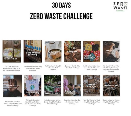 Gaya Hidup Zero Waste bukanlah tujuan, namun proses. It’s progress over perfection. Akun instagram Zero Waste Indonesia mengajak kita untuk menjalani tantangan zero waste berikut untuk menjadikan hidup kita minim sampah dan menyelamatkan lingkungan. Are you ready?