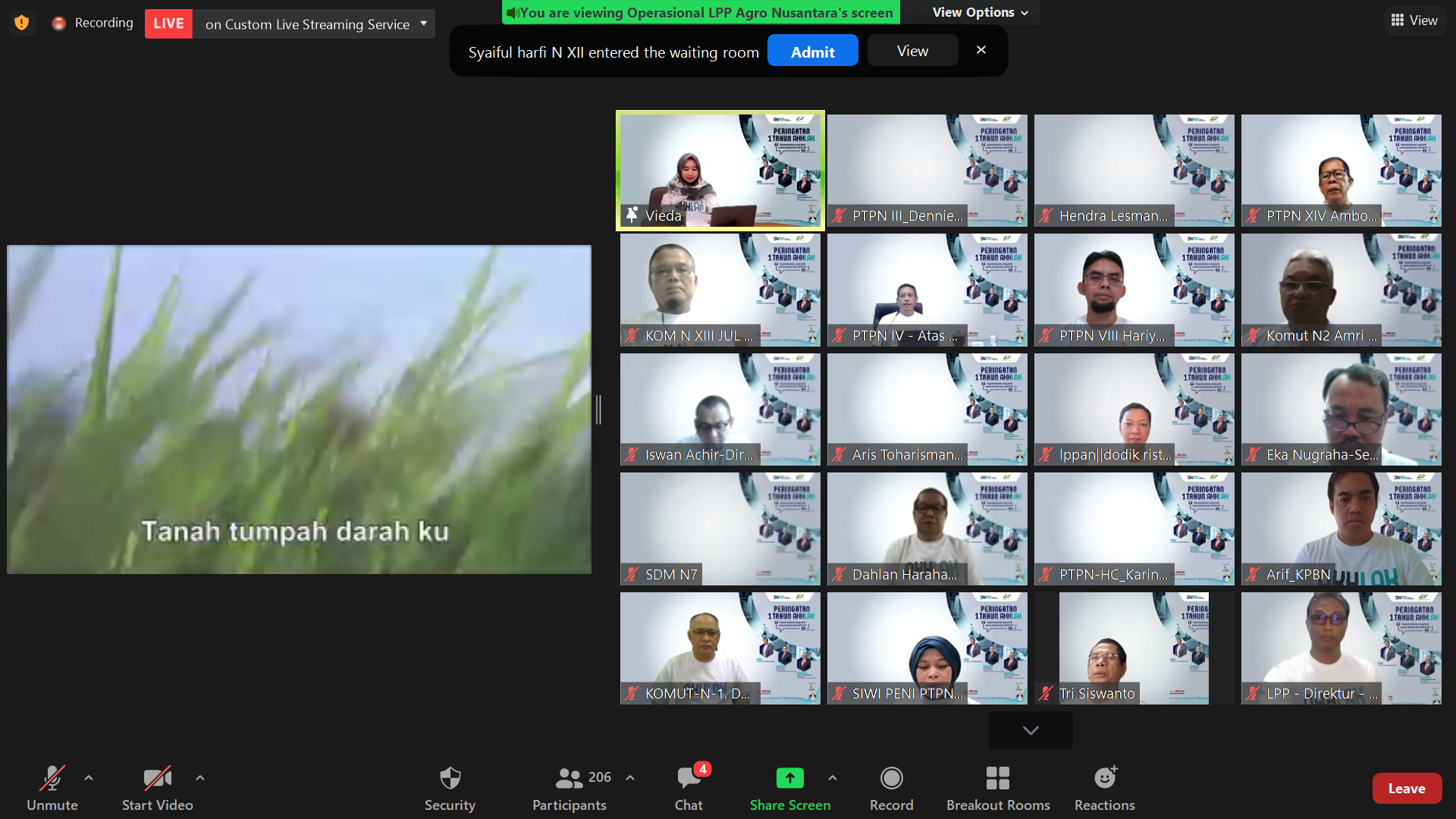Lagu Indonesia Raya dilantunkan untuk mengawali kegiatan hari ini. Semua pimpinan beserta jajarannya dan insan PTPN terlihat menundukan kepalanya dan suasana seketika menjadi hening.
