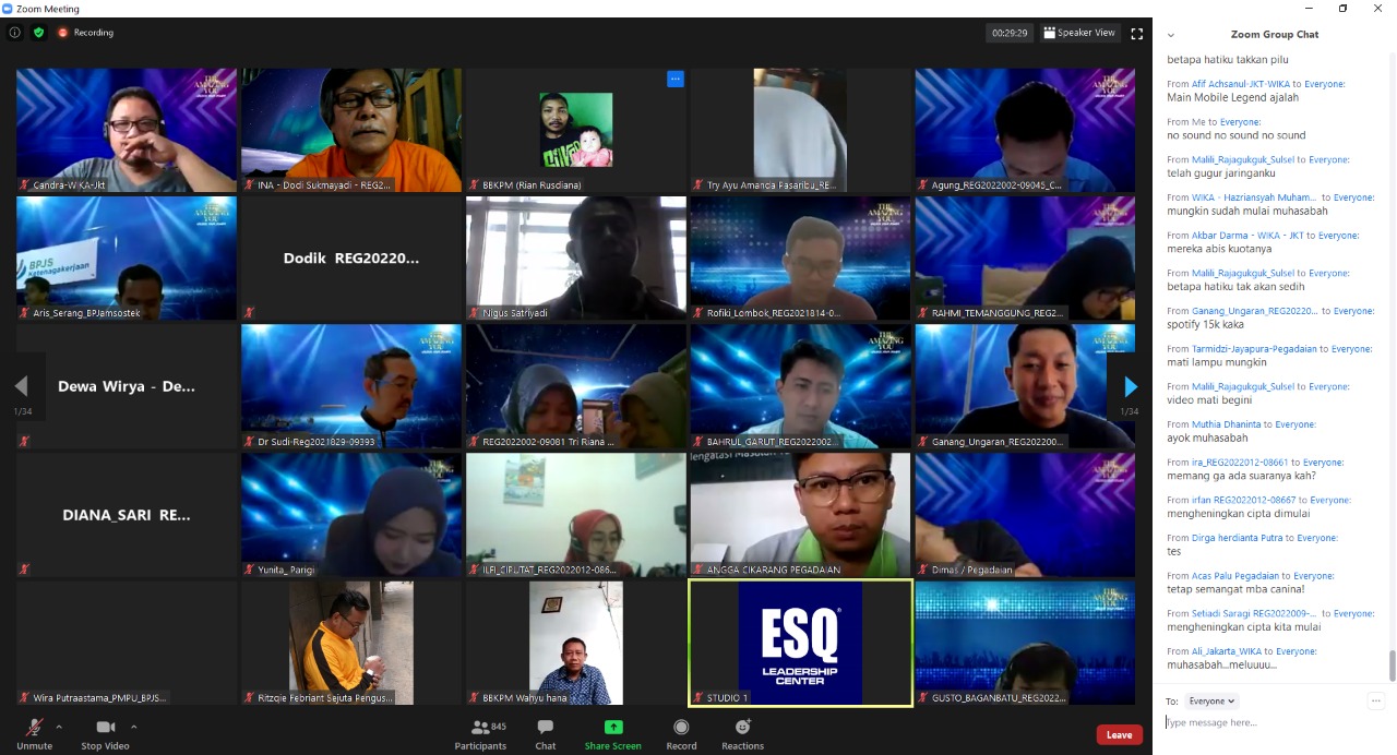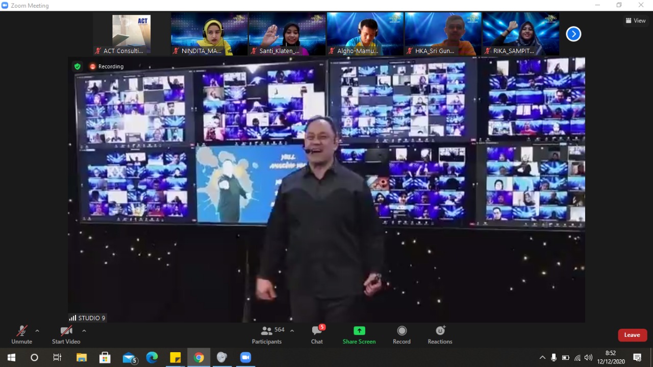 Menurut Desyana Hermala Direktur Sales Retail ESQ, sudah lebih dari 12.000 orang yang join. Para peserta terbagi menjadi 10 monitor (10 link zoom) @1000 orang per link dengan high tech berkualitas tinggi.