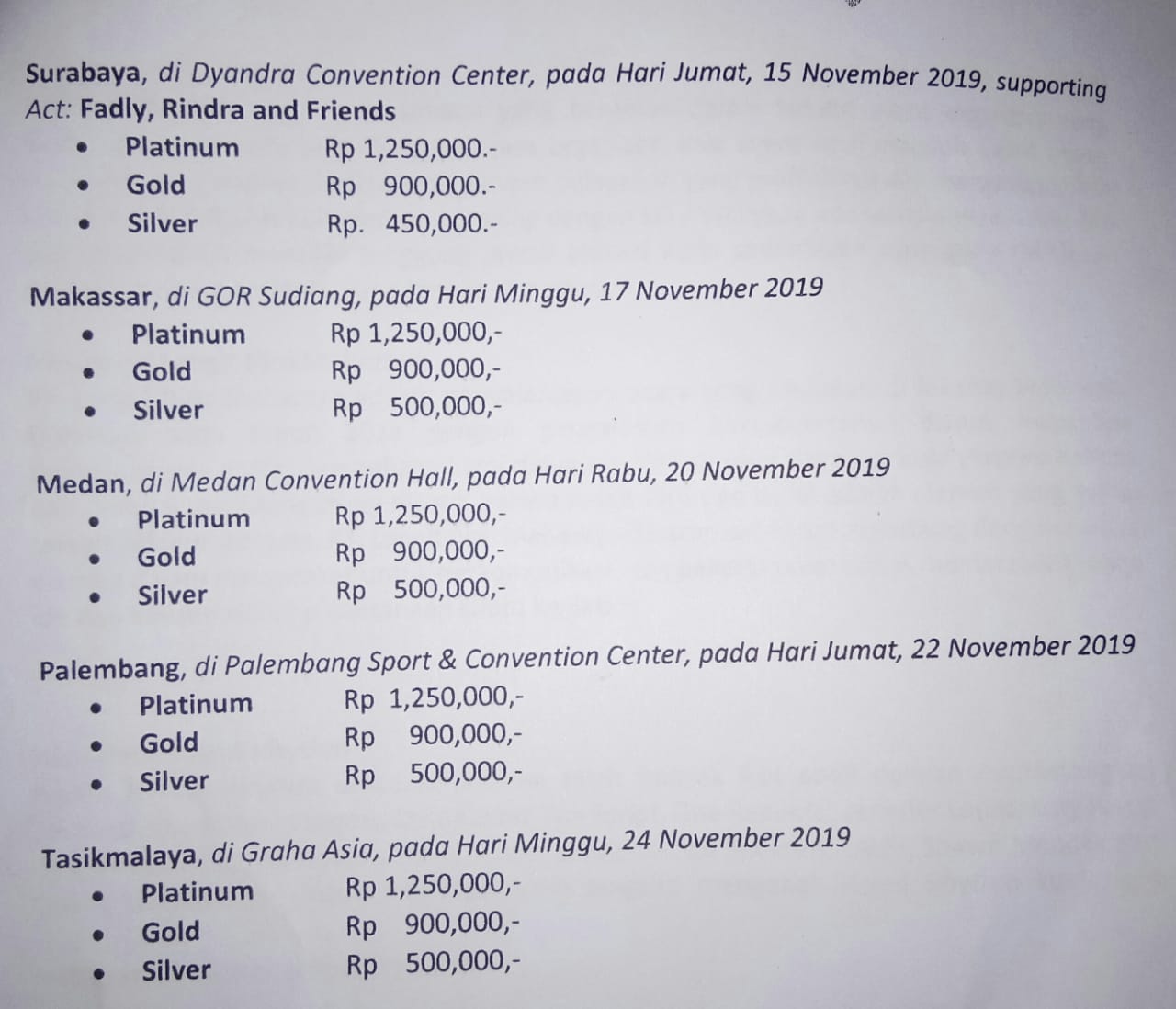 - harga tiket sudah termasuk donasi untuk Palestina