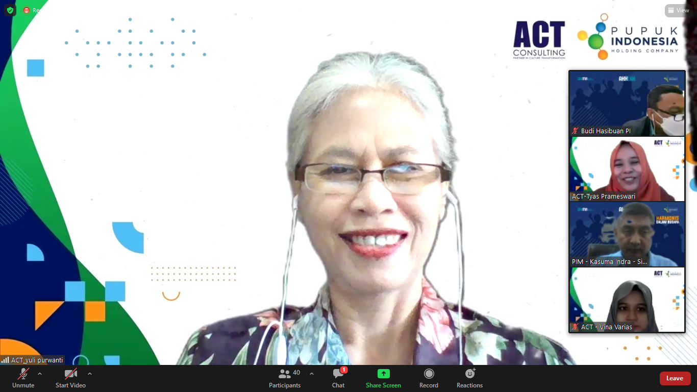 Puluhan partisipan hadir dari berbagai golongan, mulai dari direksi hingga karyawan (staff). Mereka dipandu oleh Yuli Purwanti (Leadership and Culture Specialist), Ariningtyas Prameswari (Project Manager), dan tim ACT Consulting lainnya.