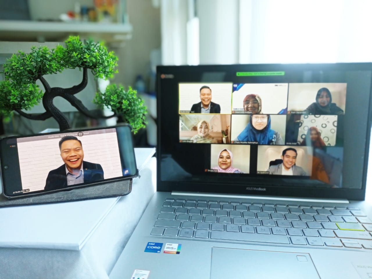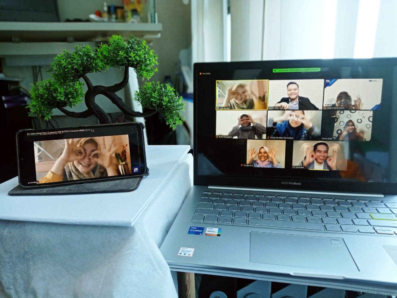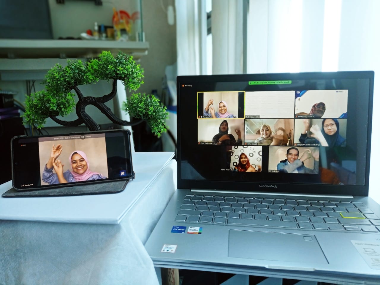 Mereka pun nampak bersemangat, happy, energic, terlihat dari layar zoom saat acara berlangsung.