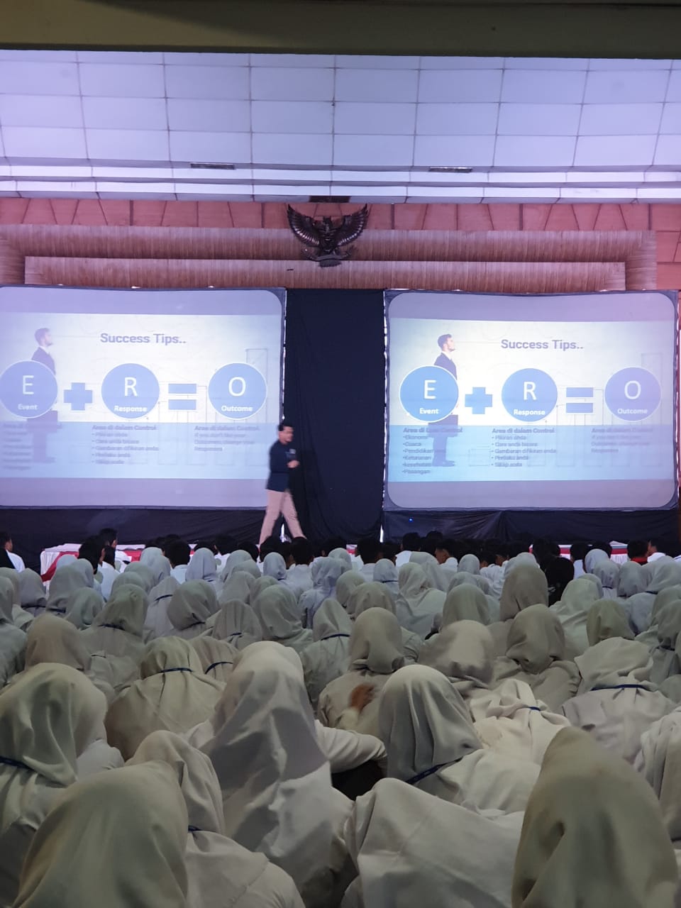 Selama menjalani Training ESQ, ribuan mahasiswa baru UMK sangat antusias mengikuti pembekalan pembentukan karakter yang dipandu oleh Trainer Rudi dari ESQ Leadership Center bersama asisten trainer Shilbi.