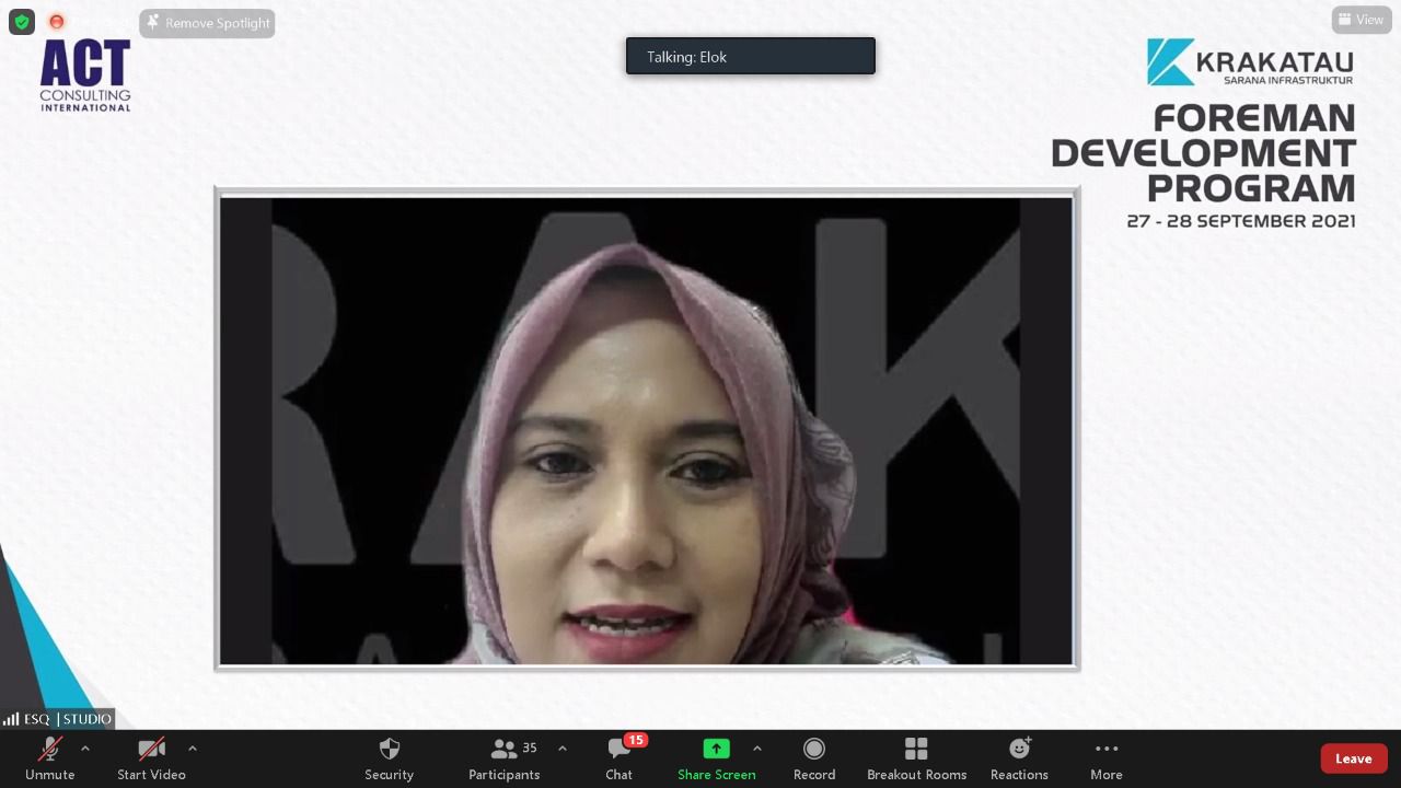 Di akhir sesi, Furi (tim ESQ) melihat dari layar zoom bahwa para pesertanya selalu antusias saat mendapatkan materi yang diberikan oleh trainer.