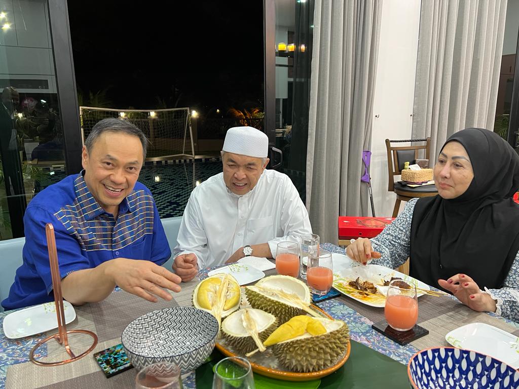 “Sebuah kehormatan besar bagi saya diajak makan malam dan makan durian musangking di Rumah keluarga Datuk Zahid Hamidi ini,” ungkap Ary.
