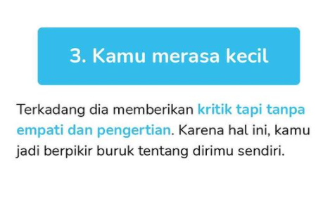 Nah, dampaknya juga banyak, seperti kamu akan menjadi people pleaser, tidak pede, sampai dampak berkepanjangan kayak trauma.