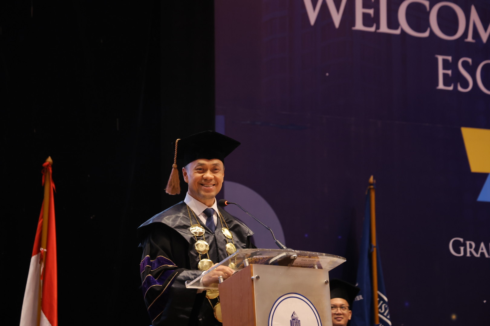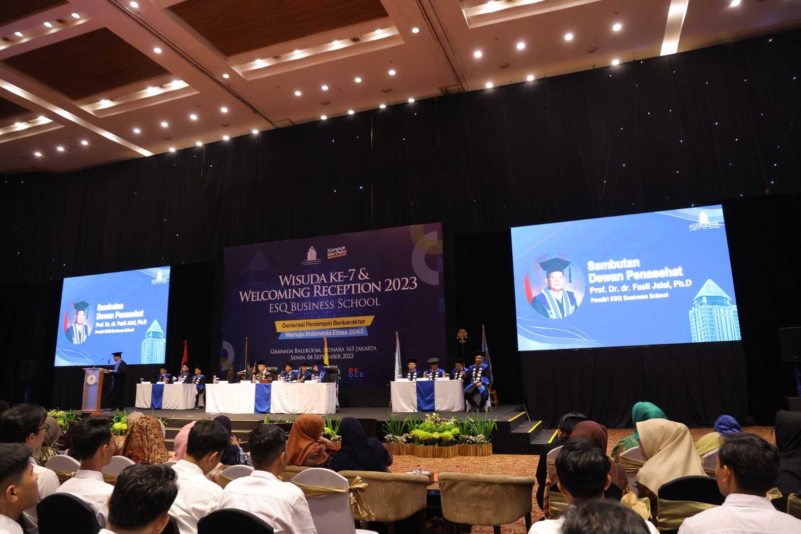 ESQNews.id, JAKARTA - Prof. Dr. dr. Fasli Jalal, Ph.D, selaku Dewan Penasehat ESQ Business School berkesempatan hadir di acara Wisuda ke-7 dan Welcoming Week 2023 ESQ Business School pada Senin 4 September 2023 di lantai 1 Granada Ballroom Menara 165, Jakarta.