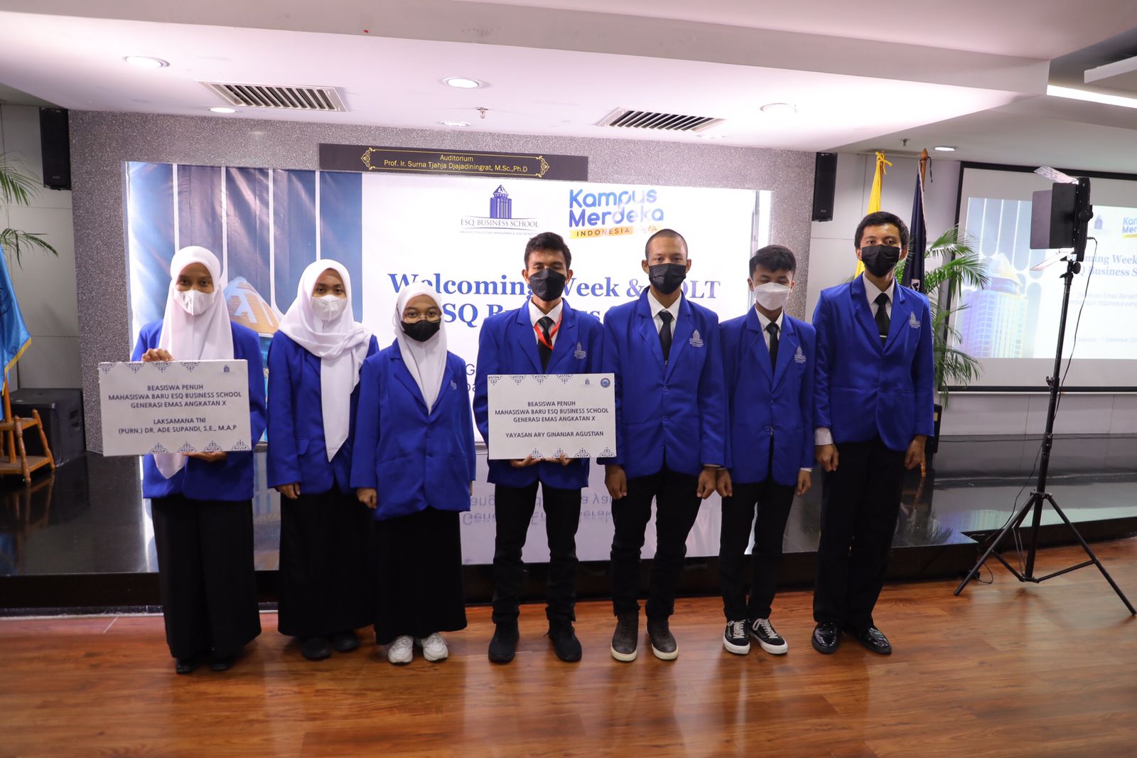 Prosesi Welcoming Week Mahasiswa Baru ESQ Business School diisi dengan sambutan dari CEO ESQ Business School pula dengan penyematan jas almamater kepada tiga orang perwakilan mahasiswa baru ESQ Business School yakni Chinta Tri Wirdana dari Prodi Manajemen Bisnis, Tara Almanda dari Prodi Sistem Informasi, dan Raihan Sultan Pasha Basuki dari prodi Ilmu Komputer.