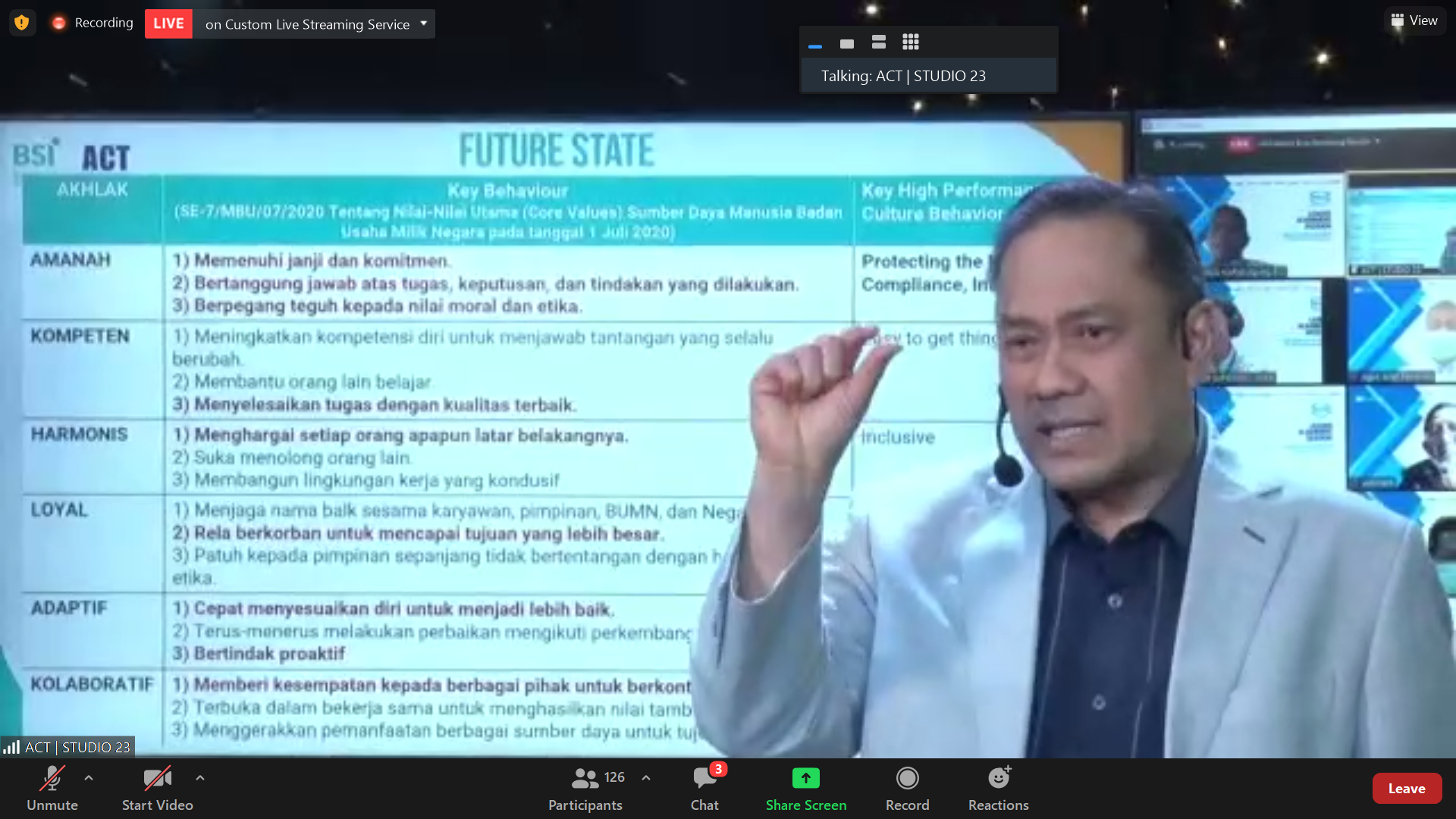 budaya AKHLAK di lingkup BUMN dan Anpernya.