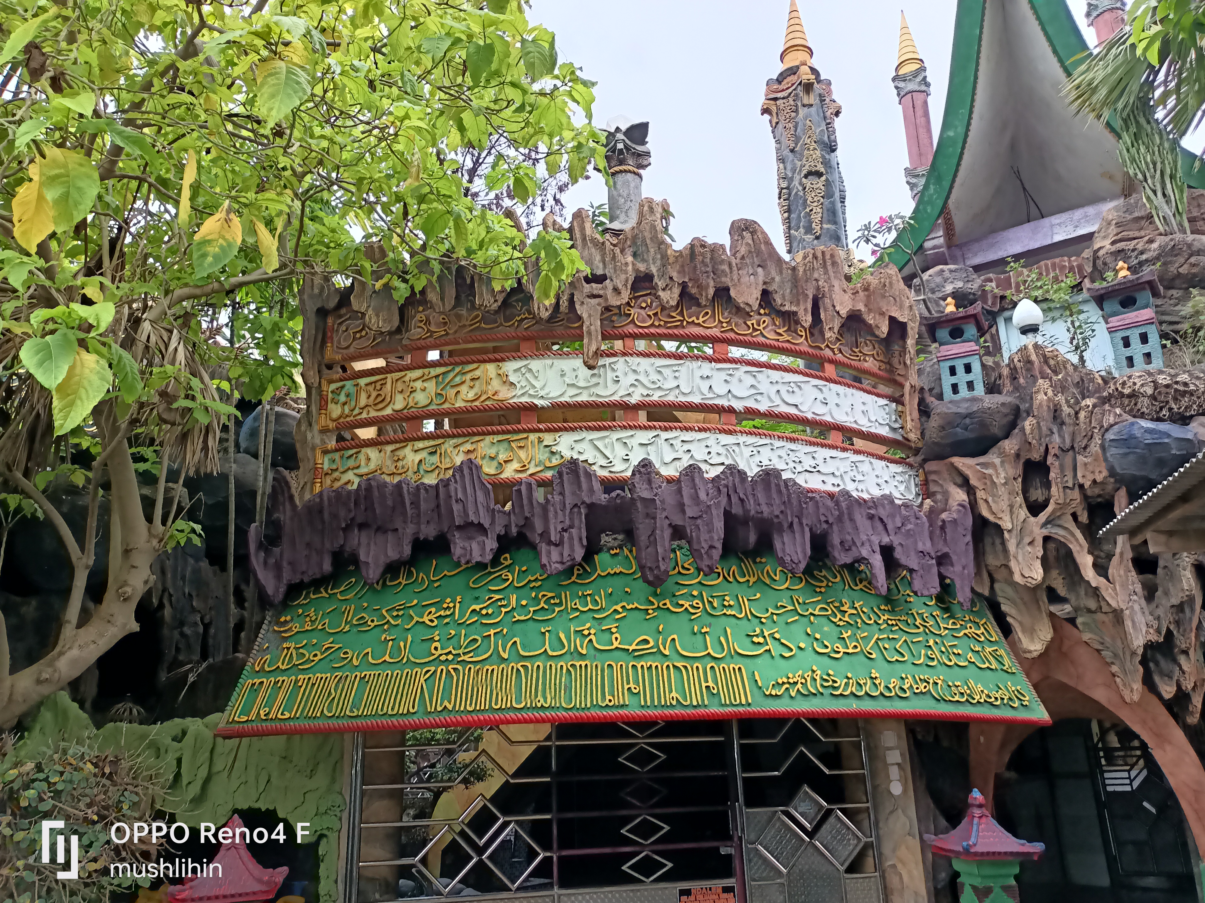 Karenanya kami terus melaju. Pengunjung sudah diperbolehkan memakai alas kaki. Pas ada spot menarik kami abadikan. Khususnya tulisan Jawa dan kaligrafi di dinding goa.